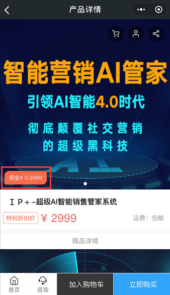 该设置会在商城详情页展示出商品的分销佣金,刺激用户转发。详细操作如下。