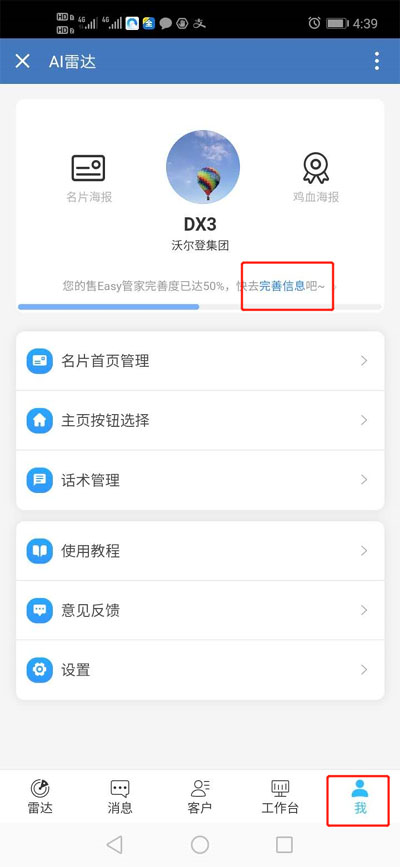 进入AI雷达,打开底部导航【我】点击【资料编辑】滑动至最下,进行地址的设置;