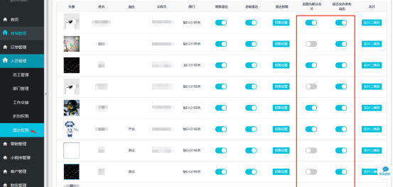 登陆企业后台管理系统,进入【人员管理】>【雷达权限】查找需要修改人员信息,点击人员信息中老板雷达关闭按钮,当图标变成蓝色状态时,该员工Boss雷达功能已被启用;当图标变成灰色状态时,该员工Boss雷达功能已被停用。