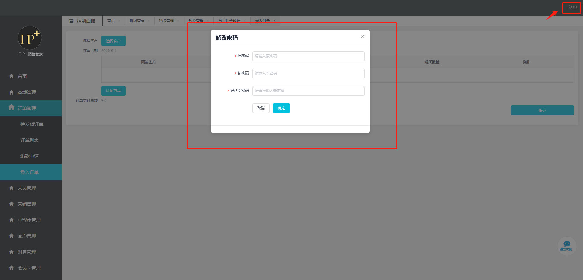 在企业后台右上角【菜单】,点击后出现【修改密码】