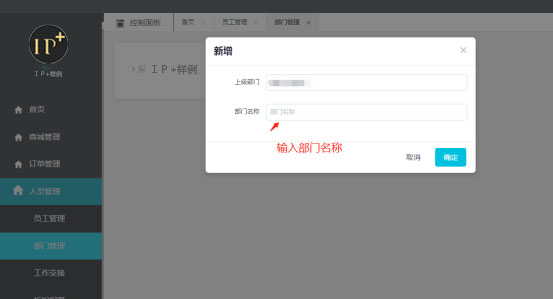 输入员工姓名,员工岗位,选择所属部门(必选)。