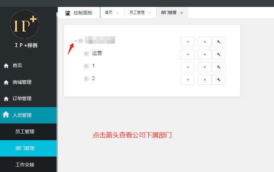 点击【人员管理】-【部门管理】,点击公司名称后【加号】添加