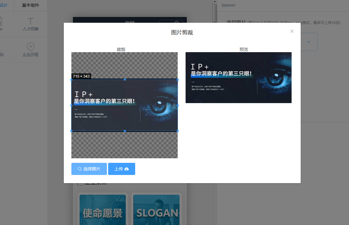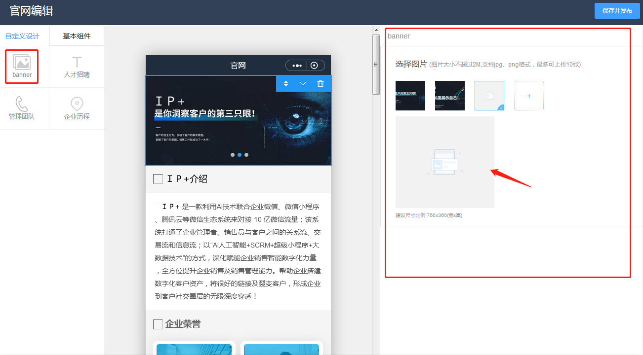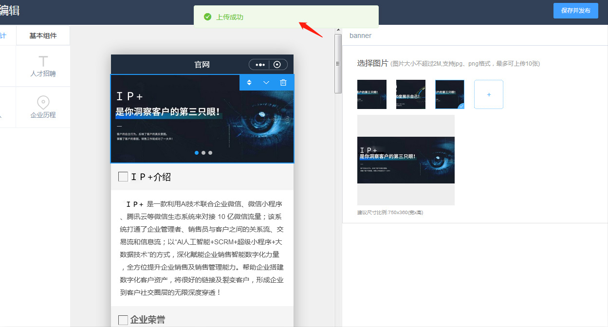 Banner模块,图片大小不能超过2m,最多可上传10张。上传2张以上的图片时,在前端会自动进行轮播。