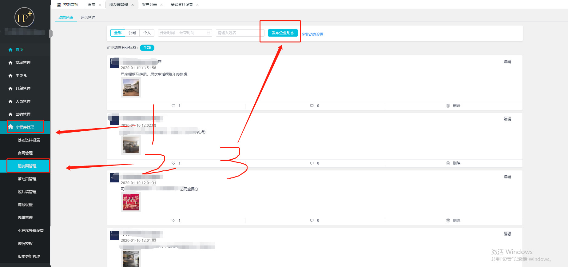 小程序管理——朋友圈管理——发布企业动态