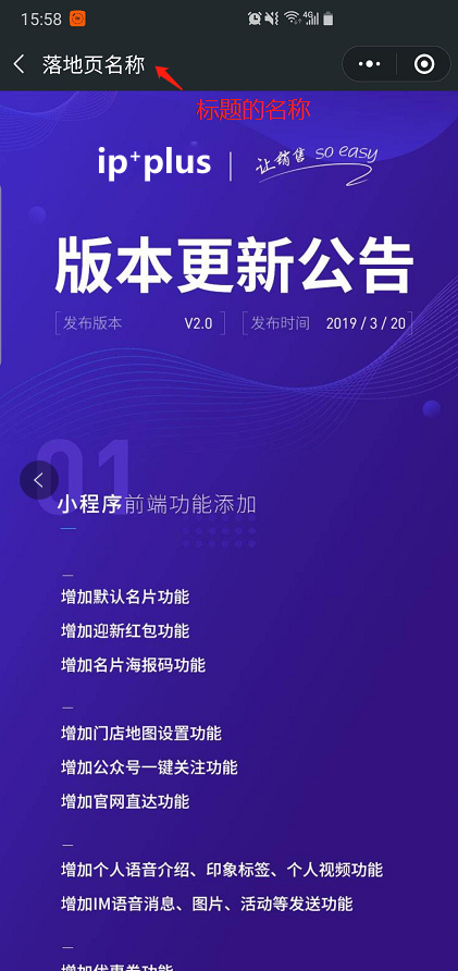 小程序管理】——【落地页管理员】中,进行编辑。添加完成后与官网中的【新页面】模块联动。设置好了,用户点击链接将跳转到预先编辑好的内容。