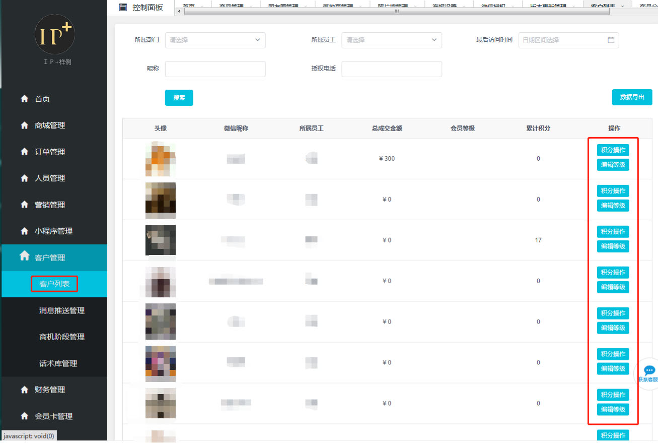 點擊【積分操作】,能夠爲此用戶進行積分的贈與與扣減。