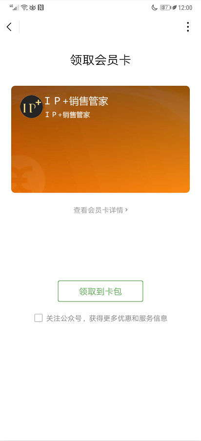 箇人中心裡點擊【領取會員卡】,然後【領取到卡包】完成會員卡的領取。