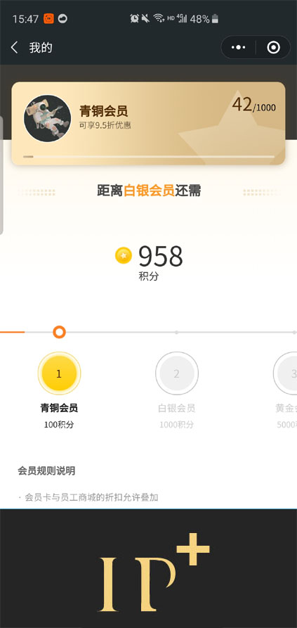 領取後在箇人中心裡,可以看到會員標識,以及可以享受到的摺扣。