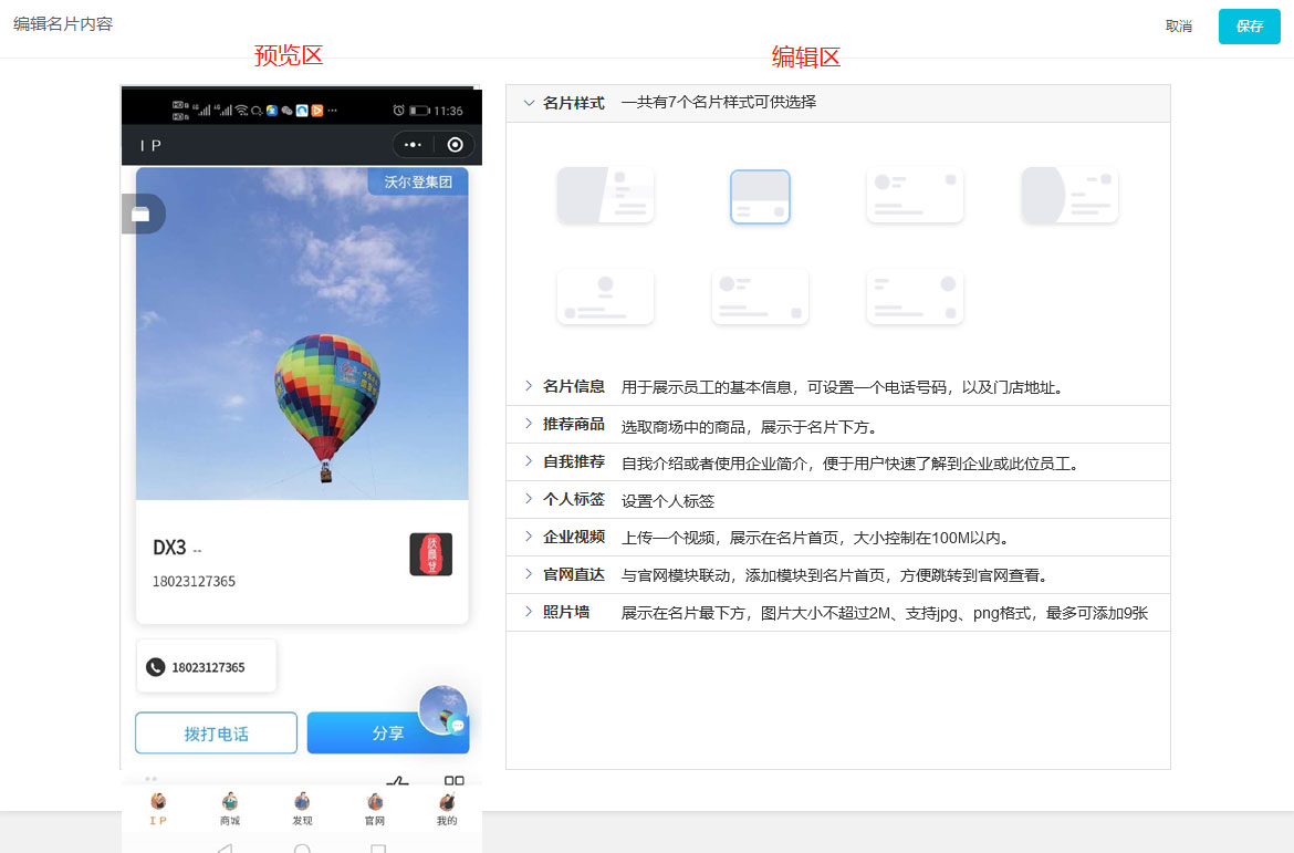 功能描述: 爲瞭提高企業對銷售員的管控及運維效率,我們在後颱人員管理的員工管理中,新添加瞭對新增員工以及現有員工實行一體化的智能名片首頁內容呈現的設計功能,您在招兵買馬之後,再也不用擔心員工不會設置智能名片的問題瞭。與此衕時,我們在這箇頁麵上也增加瞭新員工添加權限的快速通道,讓您管理員工更順心。