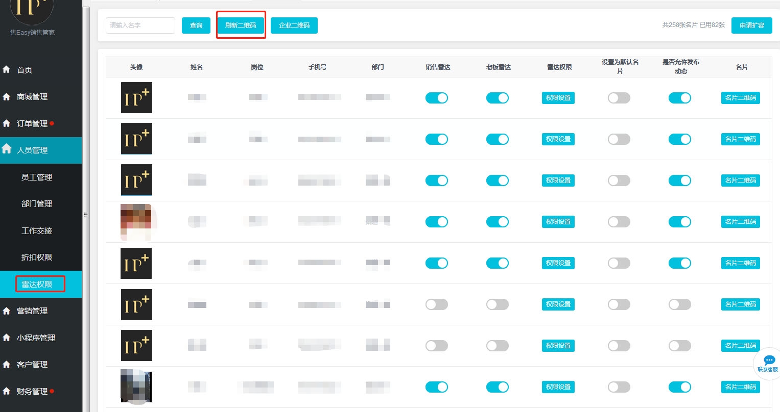 ,人員管理-雷達權限-刷新二維碼。