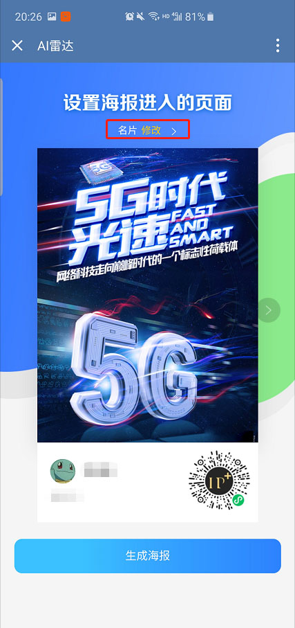 這裡有更多的海報可供選擇,進入設置頁麵,也可以自定義海報進入的頁麵。