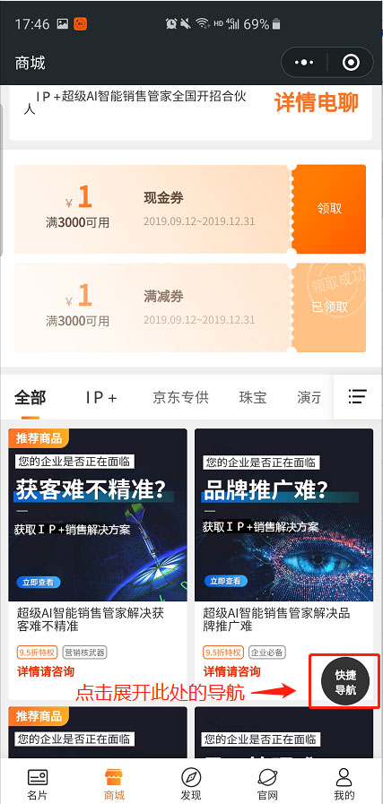 在商城中,找到一箇商品進入商品詳情頁,點擊右側的【分享】按鈕,就可以進行分享瞭。