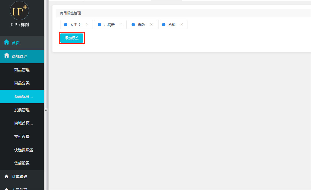 在【商城管理】——【商品標籤管理】中,點擊【添加標籤】進行添加。