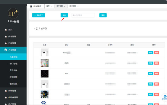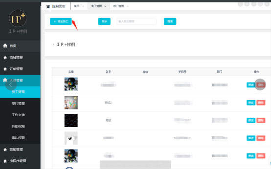 添加新員工:點擊【人員管理】-【員工管理】,點擊【添加員工】