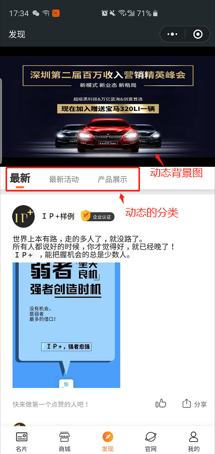 企業動態也可以設置分類,方便商戶的展示與客戶的瀏覽。