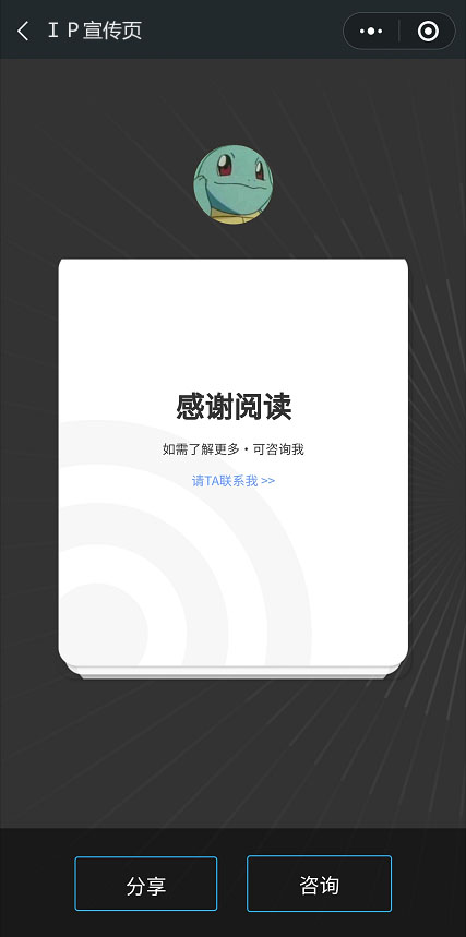 進入路徑:打開AI雷達,選擇底部導航的【我】,再點擊名片首頁管理,找到企業宣傳冊,再點擊添加企業宣傳冊,卽可選擇後颱中已經上傳好的宣傳冊文件,上傳好文件後,小程序端顯示如圖。