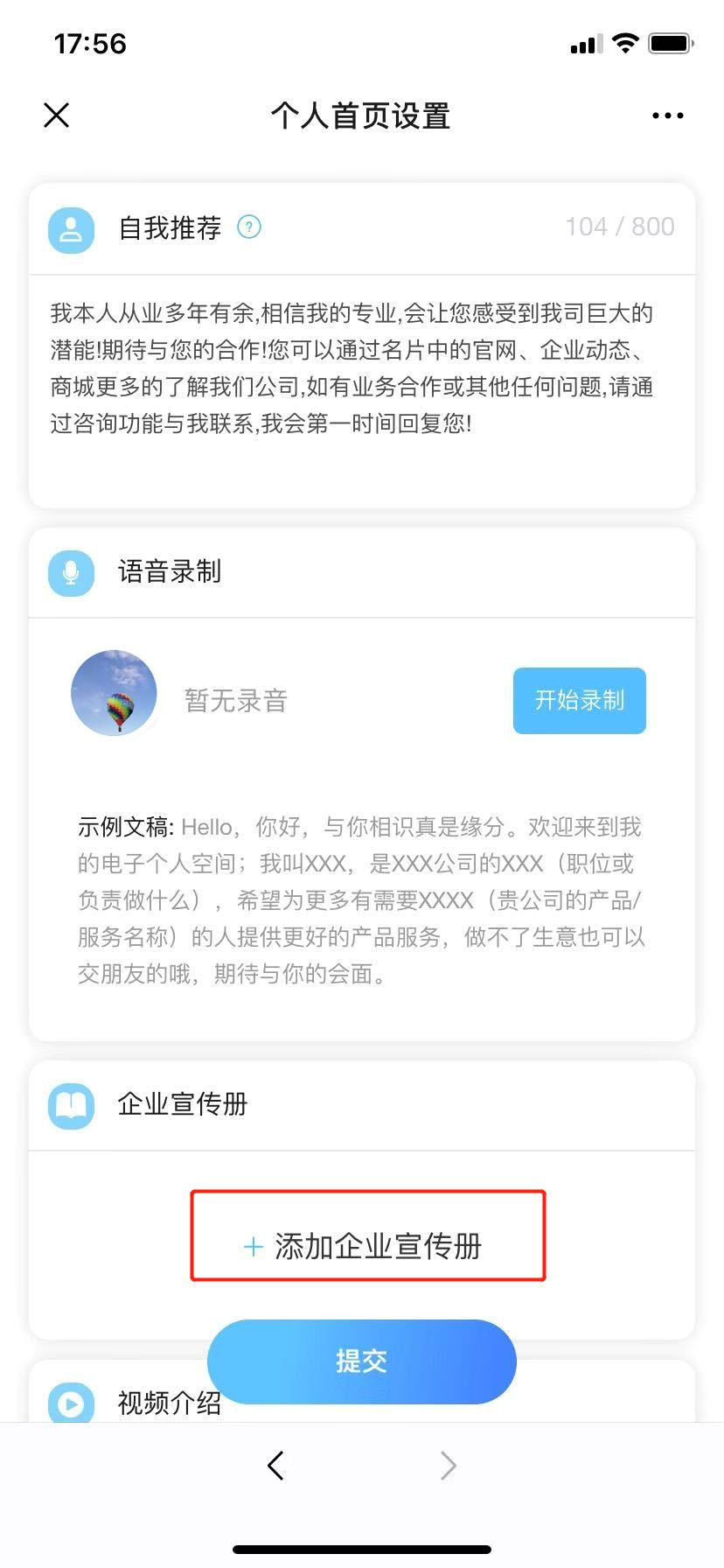 如何在名片首頁添加宣傳冊?