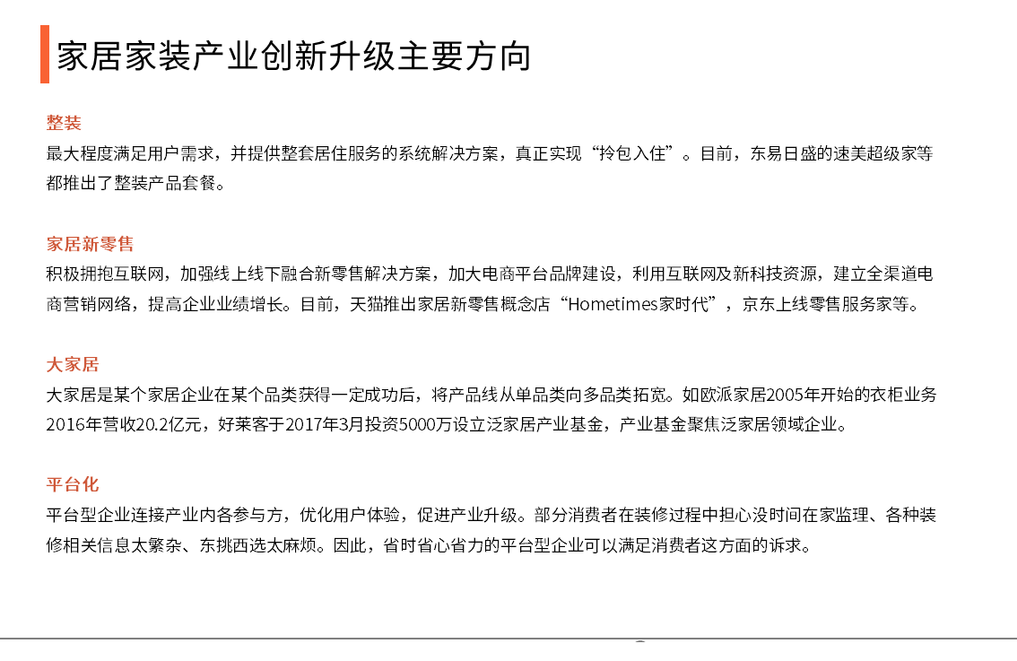 傢居傢裝産業創新陞級主要方曏