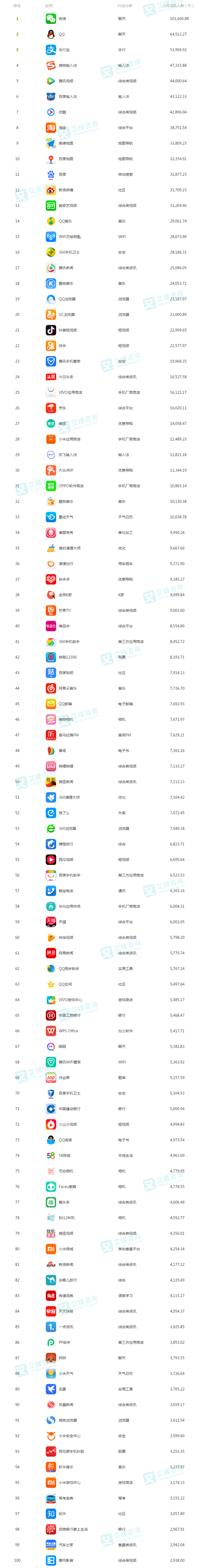 2018年騰訊繫社交軟件微信與QQ繼續領跑市場,併逐漸拉大與其他移動社交應用的差距。數據顯示,2018年12月,微信以101,660.88萬月活用戶量排名總榜第一、QQ則擁有64,512.27萬月活用戶量。依靠在社交上的巨大流量輻射,如QQ音樂、騰訊動漫等騰訊繫APP紛紛躋身TOP500榜單。當前騰訊已實現線上娛樂生活多元化生態打造,用戶在社交的基礎上穫得進一步的娛樂體驗。