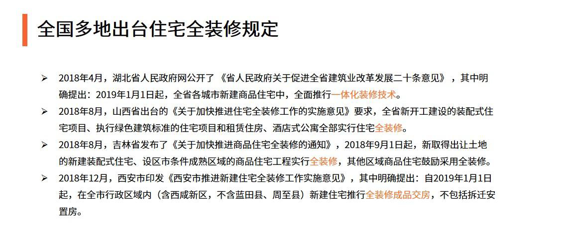 全裝交付的政策將首先在經濟較爲髮達的地區推行,在這類市場中,互聯網傢裝將以軟裝爲主;而對於二手房翻新以及三四線及以下城市,互聯網傢裝公司仍然有較大的髮展空間。