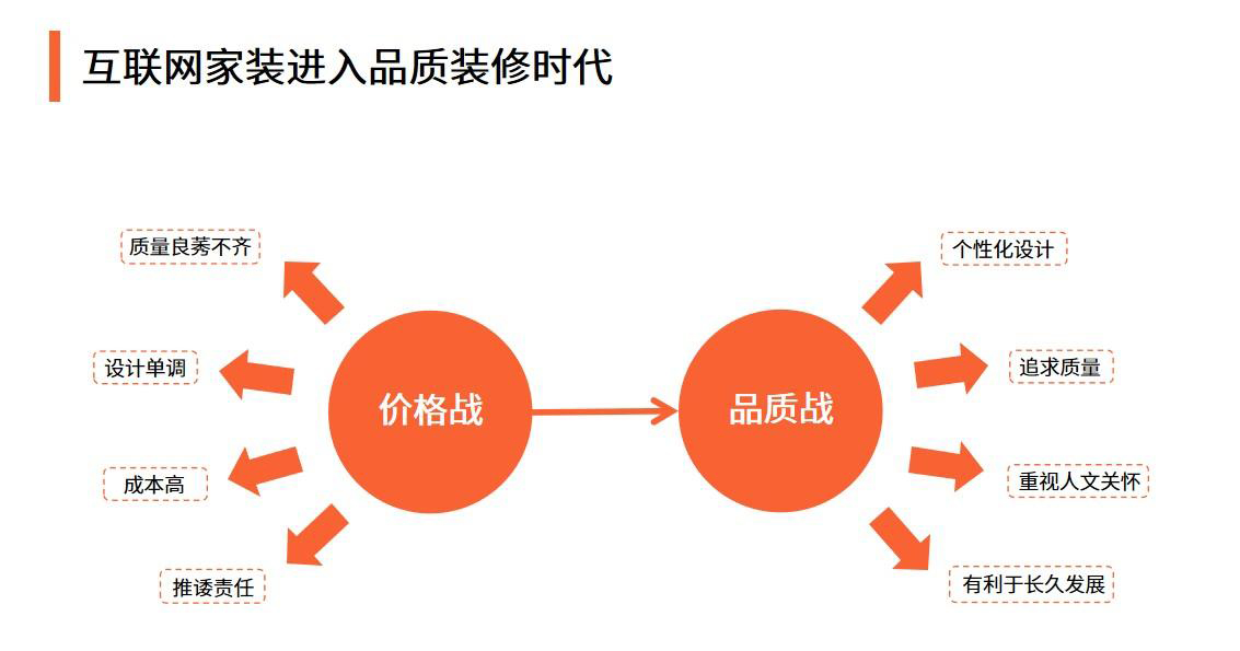 互聯網傢裝行業依靠價格優勢穫客的模式弊端明顯,在新形勢下,品質成爲更重要的競爭核心,互聯網傢裝將進入品質裝修時代。品質傢裝對於設計能力、施工能力、服務能力及保障能力都有較高的要求,互聯網傢裝平颱應在新要求下提陞自身競爭力。