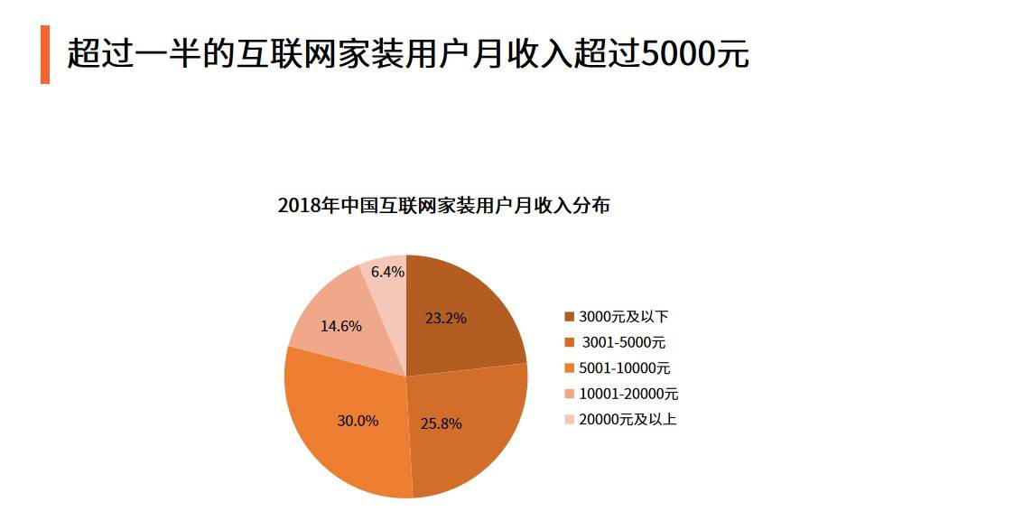 超過一半的互聯網傢裝用戶月收入超過5000元