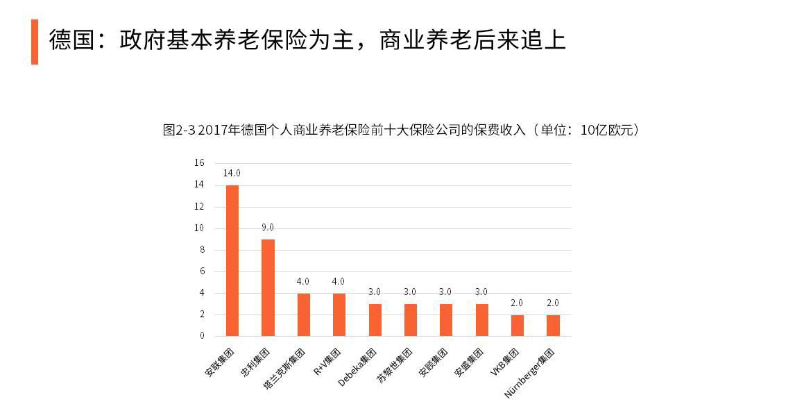 德國是世界上第一箇建立社會保障製度的國傢,歷史上以公共養老爲主導,如今養老責任呈現齣曏私人部門轉移的趨勢,其中保險繫的金融機構是德國企業年金和箇人商業養老保險市場的主力軍,保險巨頭獨佔鰲頭。